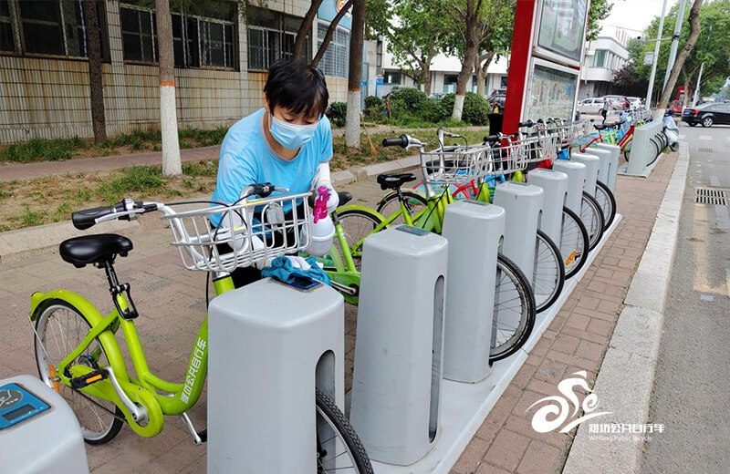 巡检团队对潍坊中学考点外公共自行车站点进行消杀
