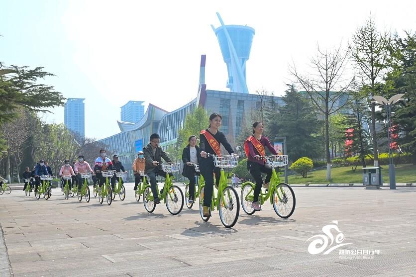 4月8日,春意盎然、纸鸢飞天,一百余位热心市民齐聚人民广场,共同参与我市新款公共自行车投放活动暨“服务更好潍坊,绿色你我同行”主题骑行活动。