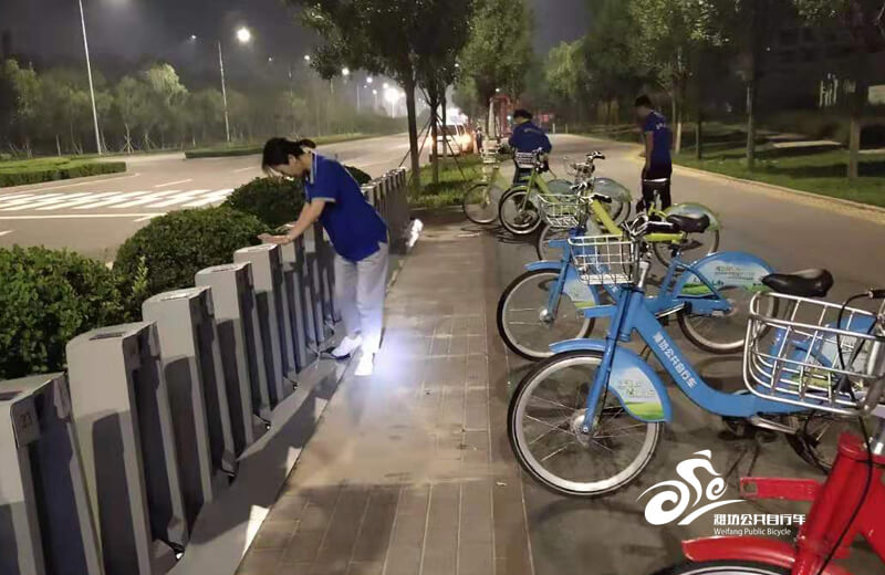 为迎接国家卫生城市复审,近日,潍坊市市政公用事业服务中心公共自行车服务中心与常州永安公共自行车运营有限公司潍坊分公司组织全体职工开赴一线,对全市的公共自行车站点展开了一次全面的卫生大清理活动,运营管理人员更是组成清洁突击队放弃休息,2次夜间通宵作业,清理站点卫生。